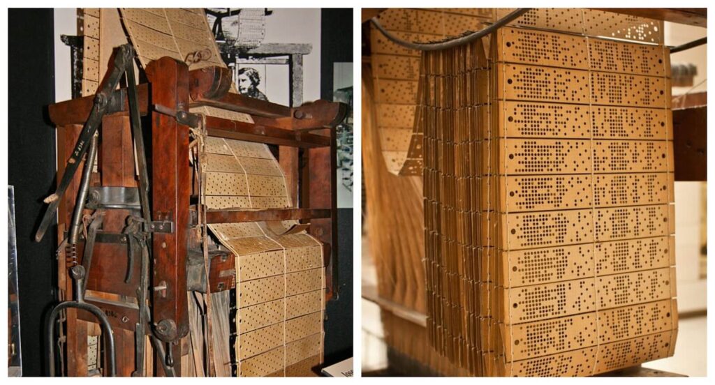 Until the early 19th century only the wealthy had the access to the ornamental fabric due to its labor-intensive and time-consuming production. While many attempted to automate the process of weaving patterns into the fabric, Joseph Jacquard, French weaver and merchant, was the one to succeed. With his invention, a loom with interchangeable punch cards, it became possible to weave the desired pattern on fabric automatically.
