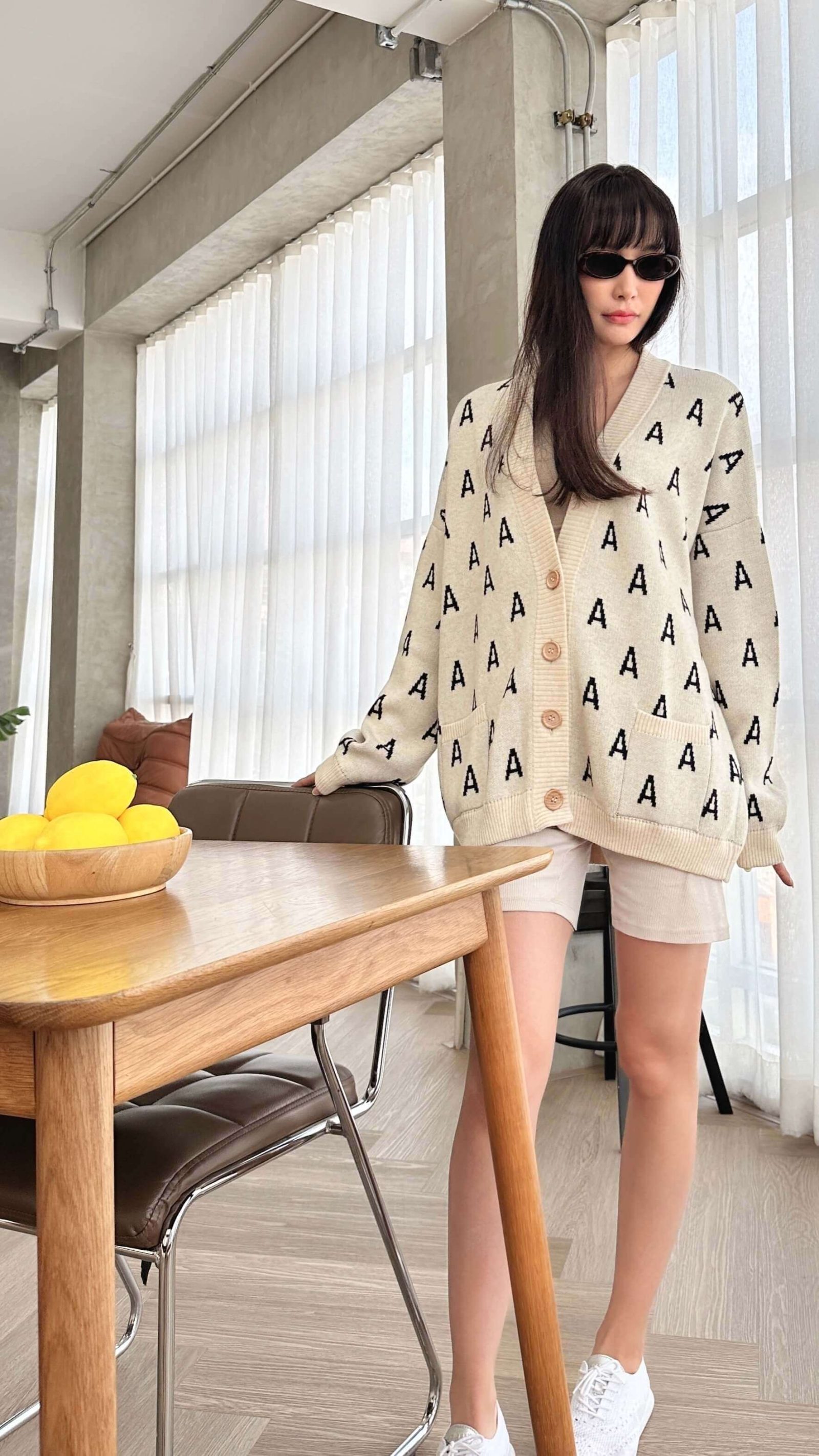 50% ноос 50% акрилк хольцтой утсаар, whole garment машин дээр оёдолгүйгээр сүлжигдсэн, суналт сайтай, гуя хүрсэн урт оймс. Хөлөнд нягт сууж, хэлбэрээ алдахгүй, нимгэн атлаа дулаахан тул даашинз, цамц, шорттой хослоход төгс тохирно.